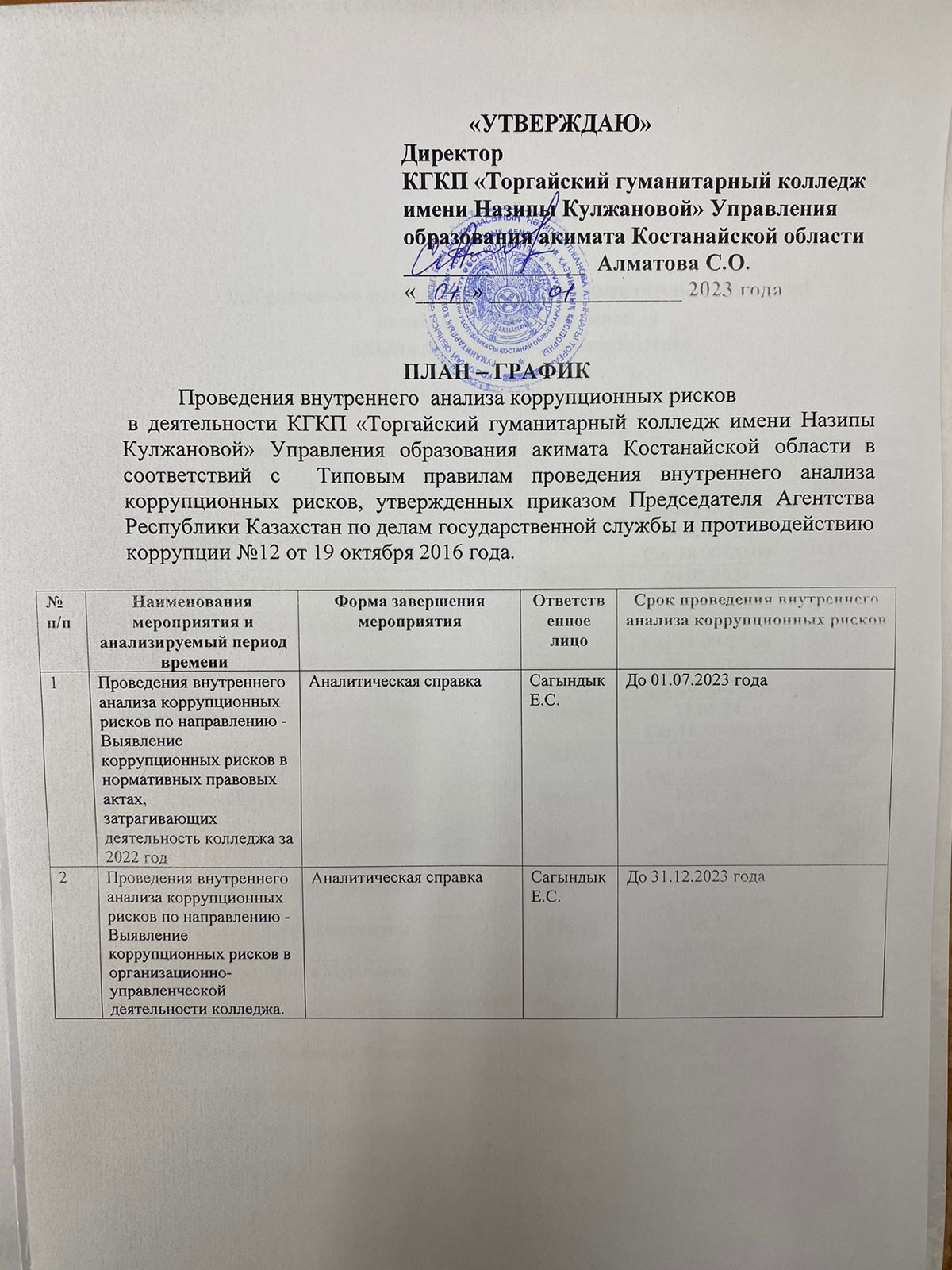 | 1 | Сыбайлас жемқорлық туралы жиналыс хаттамасы |