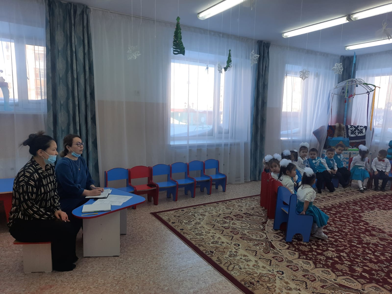 Н.Құлжанова атындағы Торғай гуманитарлық колледжінің «Мектепке дейінгі тәрбие және оқыту» мамандығының 4 курс МД-42 тобының білім алушылары «Балдырған А» балабақшасында мемлекеттік тәжірибе барысында ашық оқу қызметтерін ұйымдастыруда. Әдіскер З.Р.Хасенова білім алушылардың оқу қызметтеріне қатынасуда.