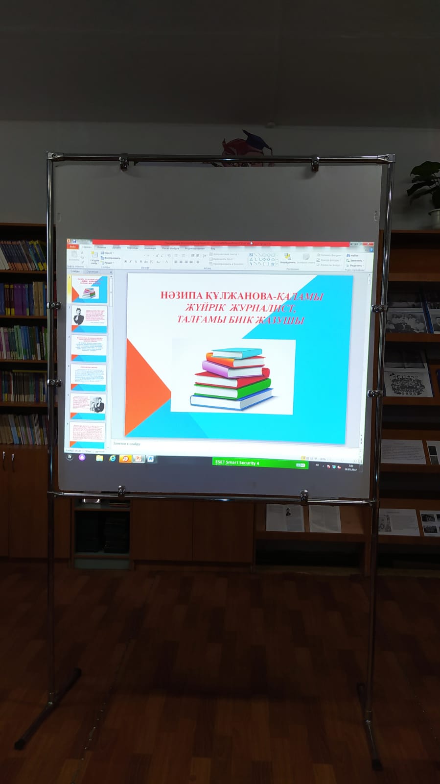 БМ 13 топтарына үгіт насихат жұмыстары жүргізілді. Барлығы 135 білім алушы қатысты. "Нәзип Құлжанова-қаламы жүйрік журналист, талғамы биік жазушы" тақырыбында слайд көрсетілді. Сонымен қатар білімалушыларға "Нәзипа ізімен" атты бинеролик көрсетілді. Алдағы уақытта Н.Құлжанованың өмірі мен шығармашылығына арналған іс -шаралар жалғасын табады.