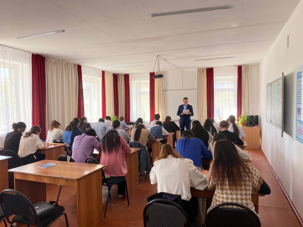 Диктантты колледждің қазақ тілі және әдебиет пәнінің оқытушысы Азамат Абжанов жоғарғы курс білім алушыларымен өткізді.