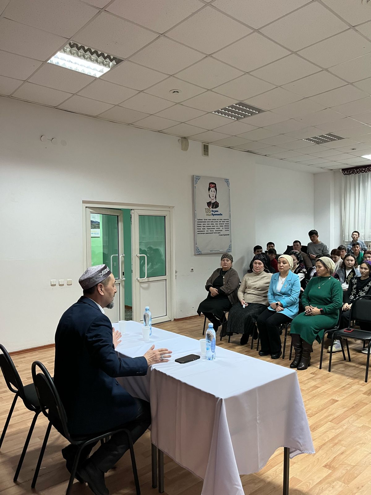Н.Құлжанова атындағы Торғай гуманитарлық колледж жатақханасында Арқалық қаласының бас имамы Бақтыбай Нұрхан Асынұлымен “Тәрбиенің -негізі имандылық”тақырыбында кездесу болды.Ондағы мақсат:Жастардың сауатты діни көзқаоасын қалыптасьыра отырып,адамгершілікке,имандылық секілді құндылықтарды бойына сіңіру.Жастардың діни санасын оятып.сауаттылығын арттыру,Кешімізге колледжіміздің оқу-тәрбие ісі жөніндегі орынбасары Оразова Г.Қ.мен “Дін”үйірмесінің жетекшісі Нұрғазина Г.С. жатақхана меңгерушісі Саржанова Э.К.қатысты.Қаламыздың бас имамы Нұрхан қажы деструктивті діни ағымдардан қорғану, дни сауаттылықты арттыру, парыз бен сүннеттің айырмашылығы жалпы дін адамды көркем мінезге, сабыр мен парасаттылыққа тәрбиелейтін құрал екенін нақты мысалдар келтіре отырырып жете айтып өтті.Студенттерді толғандырып жүрген сұрақтарына толықтай жауап берілді.