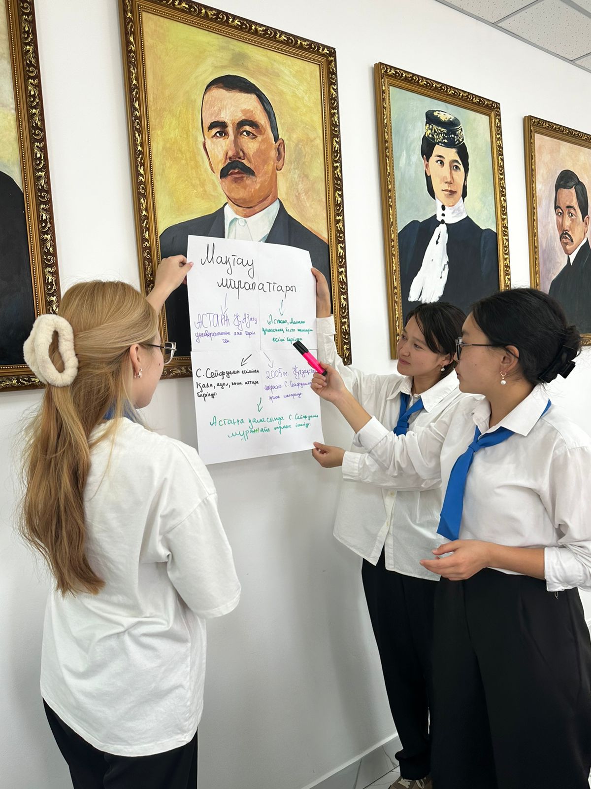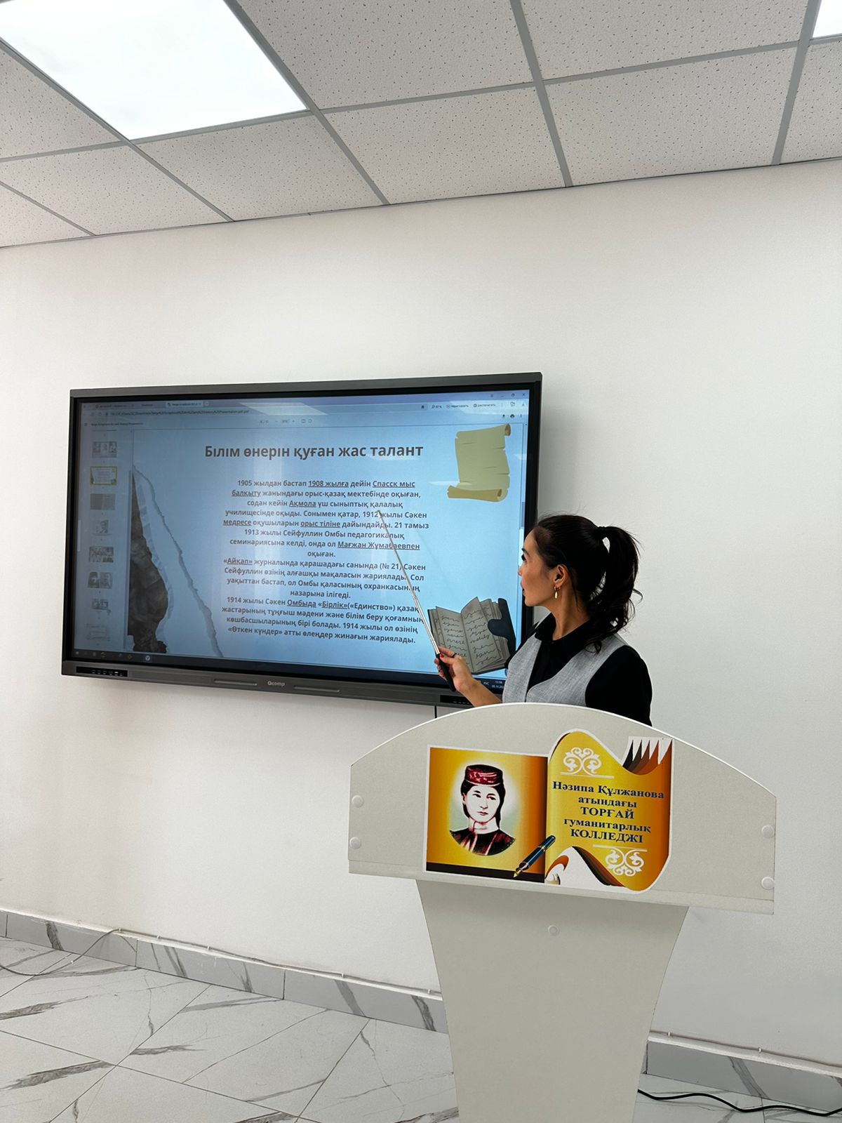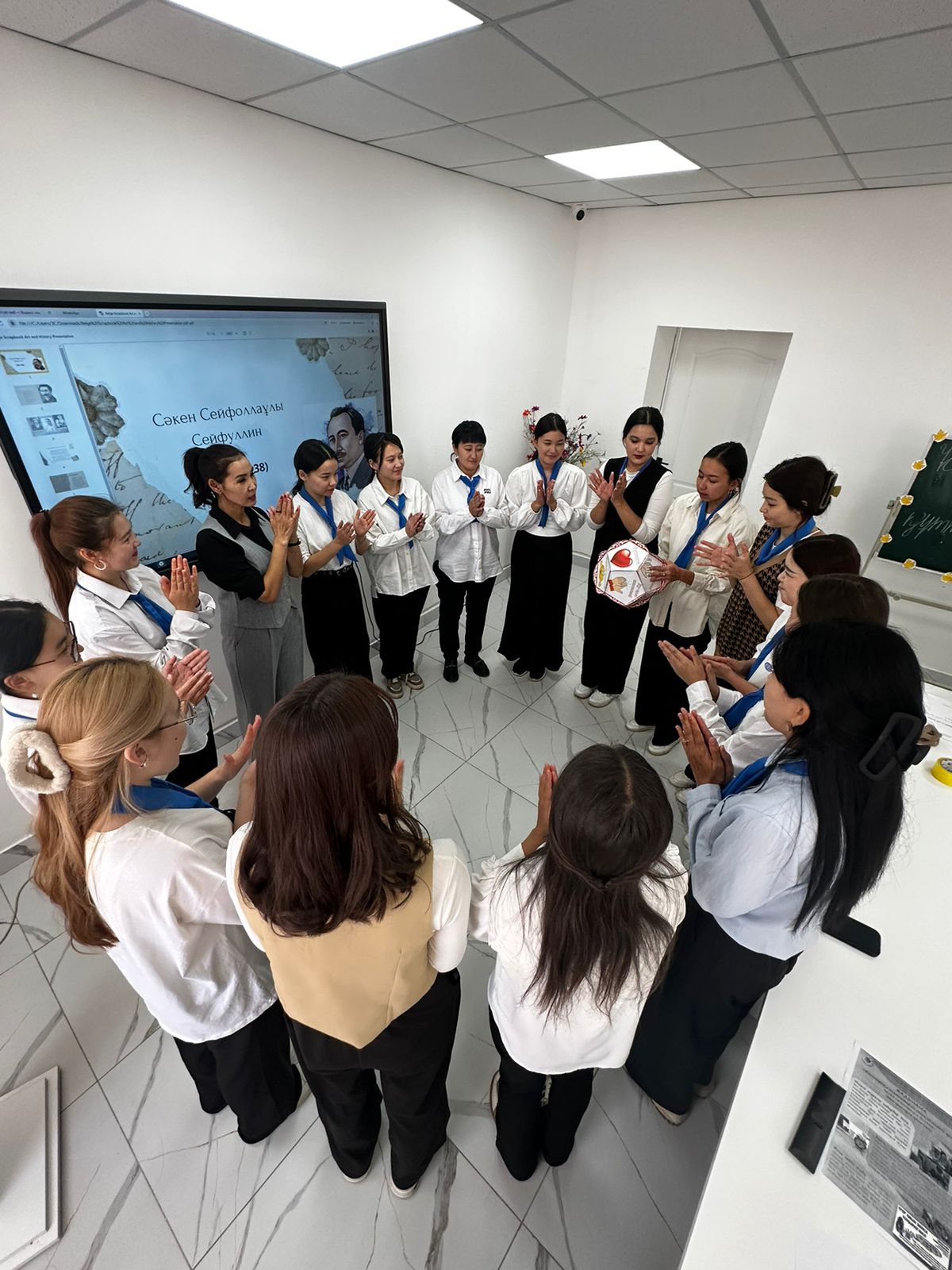 "Бастауыш білім беру" мамандығының БМ-11 тобы бүгінгі күні Біртұтас тәрбие бағдарламасы шеңберінде "Тікенді, бірақ сенімді жол"тақырыбында Сәкен Сейфуллиннің 130 жылдық мерейтойына арналған " Сәкен-жырдың сарқылмас дариясы" атты жетекшілік сағатын өткізді. Тақырып аясында жалынды жазушы,драматург, мемлекет қайраткері, қазақ әдебиетінің негізін қалаған Сәкен ( Сәдуақас) Сейфуллиннің өмір жолы,еңбек жолын " Додокаэдр" әдісі негізінде түсіндіріп, топтық жұмыс барысында білімалушылар жазушының еңбек жолын талқыласа, ендігі топ Сәкеннің мақтау-марапаттарын жарыса ортаға салды. Топ жетекшісі Луиза Бекетқызының" Галерияны шарлау" әдісі негізінде түсіндіру жұмыстары жүргізілді.
