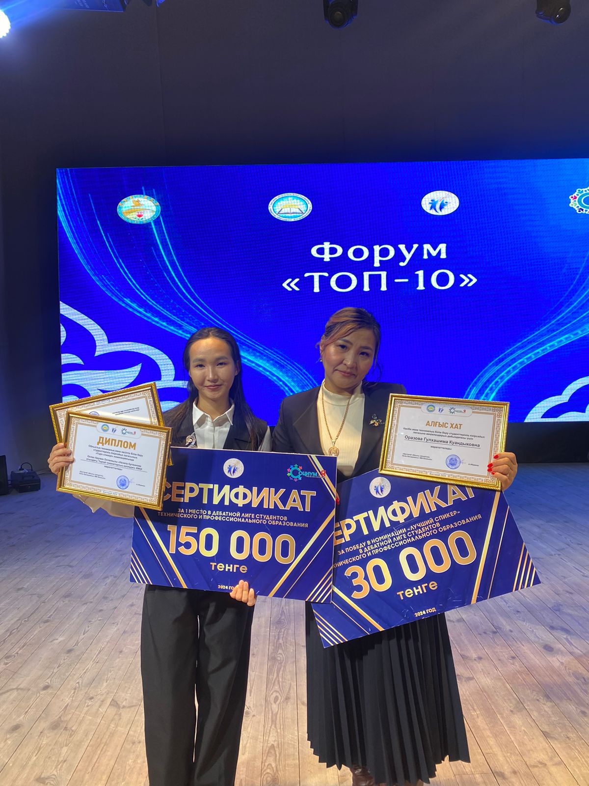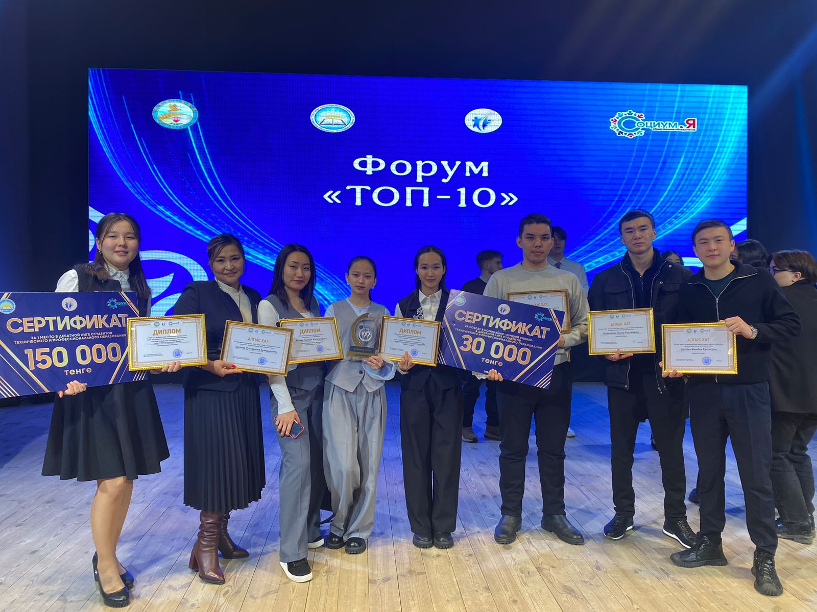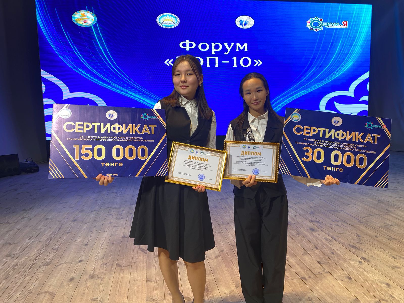 Бүгін облыстық білім басқармасымен бірлесе отырып "Социум и я" қоғамдық бірлестігінің ұйымдастырумен жылдың үздік студенттерін марапаттауға арналған салтанатты іс шара Қостанай қаласы, "Мирас" мәдениет үйінде жылдық марапаттау рәсімі өткізілді. Облыстың ең үздік студенттері жиналған шараның алғашқы құттықтау сөзі Қостанай облысы білім басқармасының " Техникалық және Кәсіптік білім беру" бөлімнің басшысы Ж.С.Жумина ханымның құттықтау сөзімен ашылды. Аталмыш қорытынды марапаттау шарасына Арқалық қаласынан біздің колледждің "Өркениет" дебат клубының белсенділері қатынасып жылдың үздік дебатшылары ретінде қазақ лигасының чемпионы марапатын иеленді және 150 мың теңге сыйақысы табысталды.Жыл бойына өткізілген Дебат ойынының 8 кезеңіне қатынасып ақтық кезеңде жүлделі 1 орынды иеленді,жылдық ойынның қорытындысы бойынша Оспан Аружан қазақ лигасында "Ең үздің спикер" атанып 30 мың теңге жүлдемен оралды.Біздің студенттерімізді облыс көлеміндегі үздік студенттер қатарынан көргенімізге шын жүректен қуаныштымыз. Алар асуларыңыз әлде де көп болсын!!!