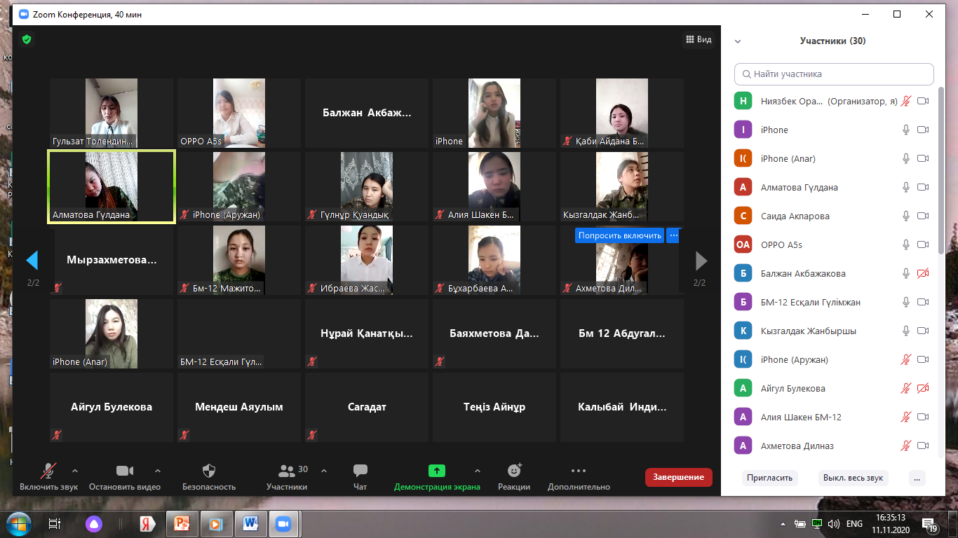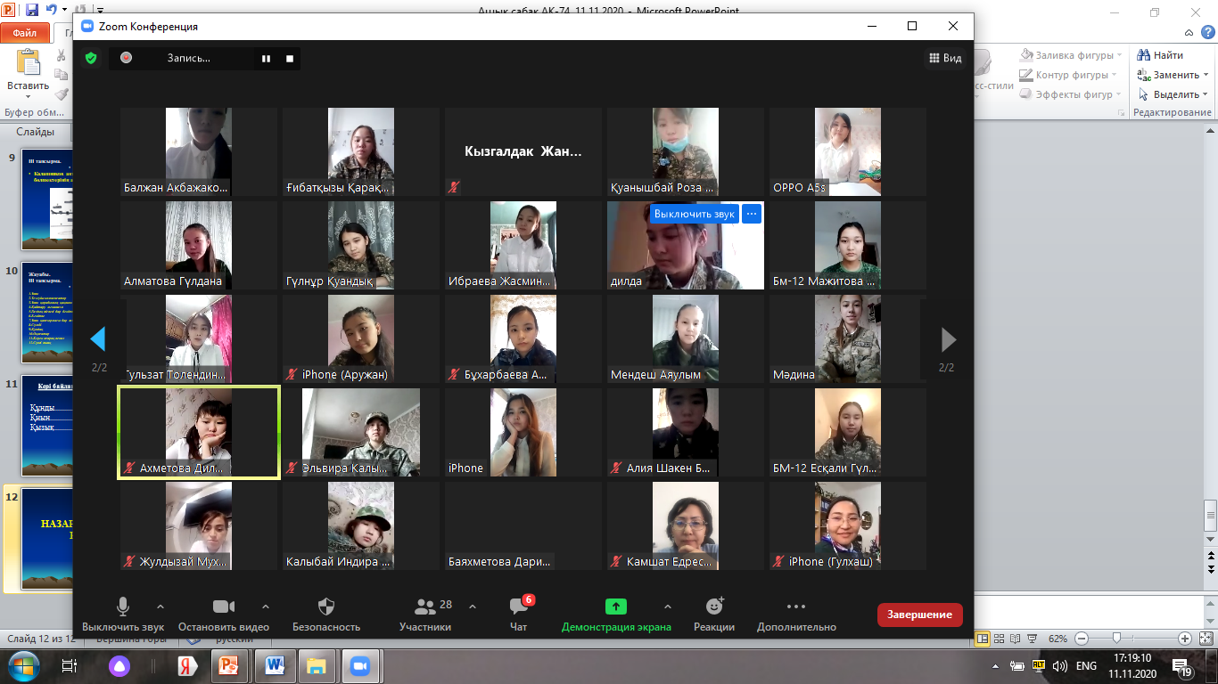 Сабақ соныңда студенттермен Құнды.....Қиын......Қызық....... деген кері байланыс жасалып, әр білім алушы өз ойларымен бөлісіп, сабақтан алған әсерлерін айтып өтті.