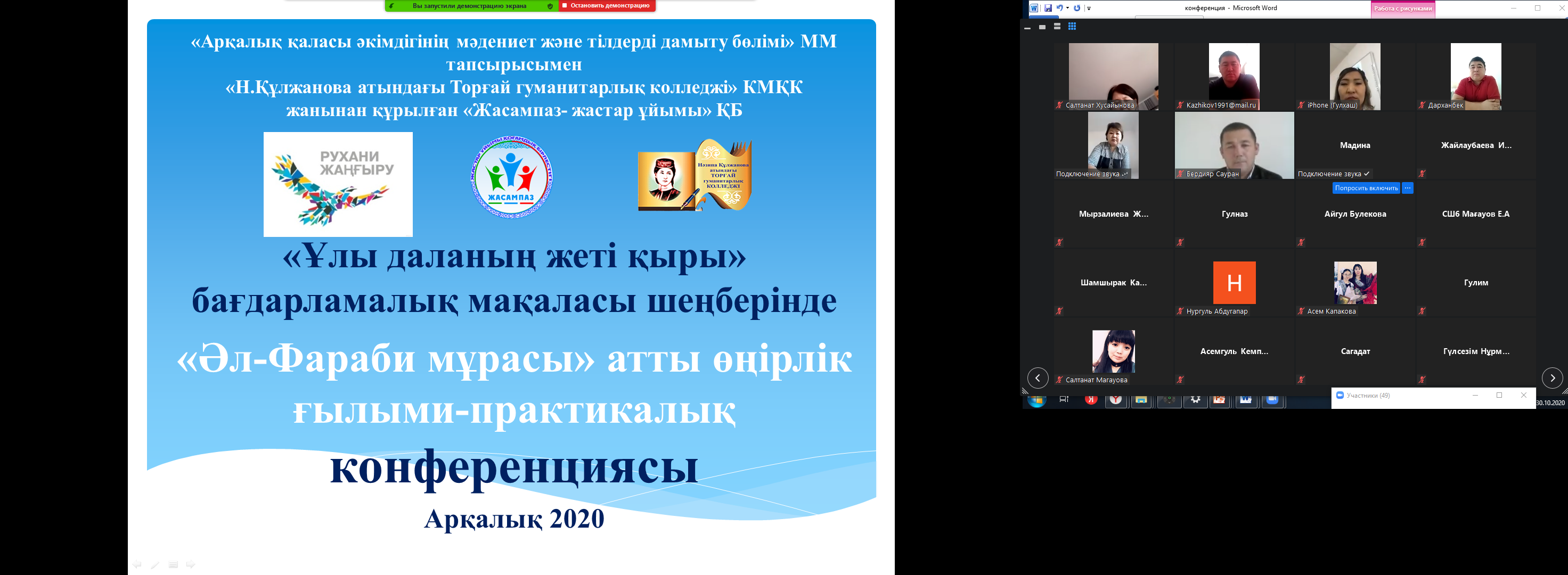 Оқытушылар мен білімалушыларға арналған «Әл-Фараби мұрасы» атты өңірлік ғылыми – практикалық конференциясына ұсыным пленарлық отырыста қабылданды.