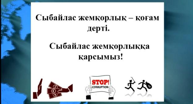 Сыбайлас жемқорлық - заманмен бірге өсіп - өркендеп, небір тегеурінді қарсылықтарға төтеп беріп, қайда мол қаражат, пайда болса, сол жерге тамыр жайып, бүгінге дейін жойылмай отырған қауіпті кеселдің бірі. Бұл кесел дамушы елдердегідей біздің жас мемлекетімізге де орасан зор нұқсан келтіріп отыр. Сондықтан да Қазақстан Республикасының мемлекеттік саясатының негізгі басымдылықтарының бірі осы зұлымдықпен күресу болып табылады. Өскелең ұрпақтың сыбайлас жемқорлыққа қарсы мәдениетін қалыптастыру мен құқықтық сауаттылығын дамыту мақсатында «Қостанай облысы әкімдігінің білім басқармасы» мемлекеттік мекемесі және үкіметтік емес ұйымы ресурстық орталығы «Социум Я» жемқорлыққа қарсы іс - шара өткізгені баршамызға аян.
