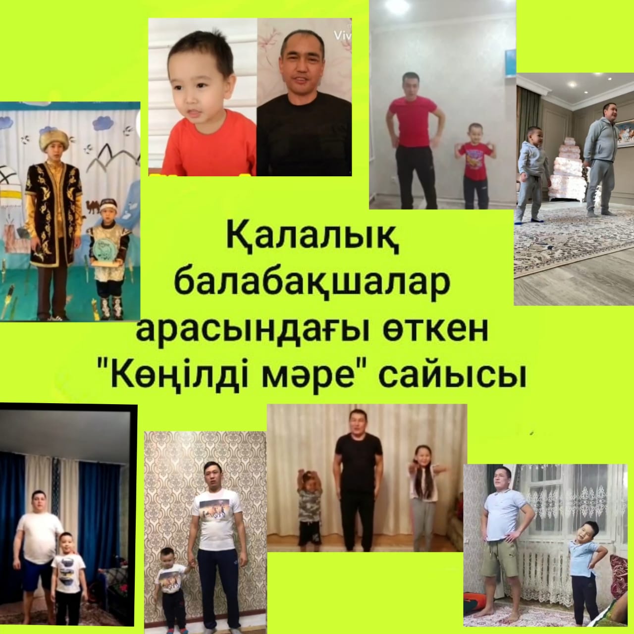 Сайысқа ата-аналар да, бүлдіршіндер де өте жоғары дәреже де дайындалғандарын көрсете білді. Қашықтан дайындап жіберілген бейне роликтердің қорытындысын әділ-қазылар алқасы қорытындылады. Әділ- қазылардың шешімі бойынша Бас жүлдені – «Ақбота» балабақшасының тәрбиеленушісі мен әкесі- Шалабайұлы Азат-Шалабай Айбат, I орынды «Золотой ключик» бөбекжай балабақшасының тәрбиеленушісі мен әкесі – Аширалиев Руслан – Аширалиев Арсен, II орынды- «АйАли» балабақшасының тәрбиеленушісі мен әкесі- Кусаинов Шокан- Шоқанұлы Әлинұр, III орынды - «Раушан» балабақшасының тәрбиеленушісі мен әкесі- Жусупбеков Қайырбек- Разах Бекдиар, белсенділік көрсетіп, қатынасқаны үшін «Балдырған А» балабақшасының тәрбиеленушісі мен әкесі- Абай Азат-Муканов Расул,