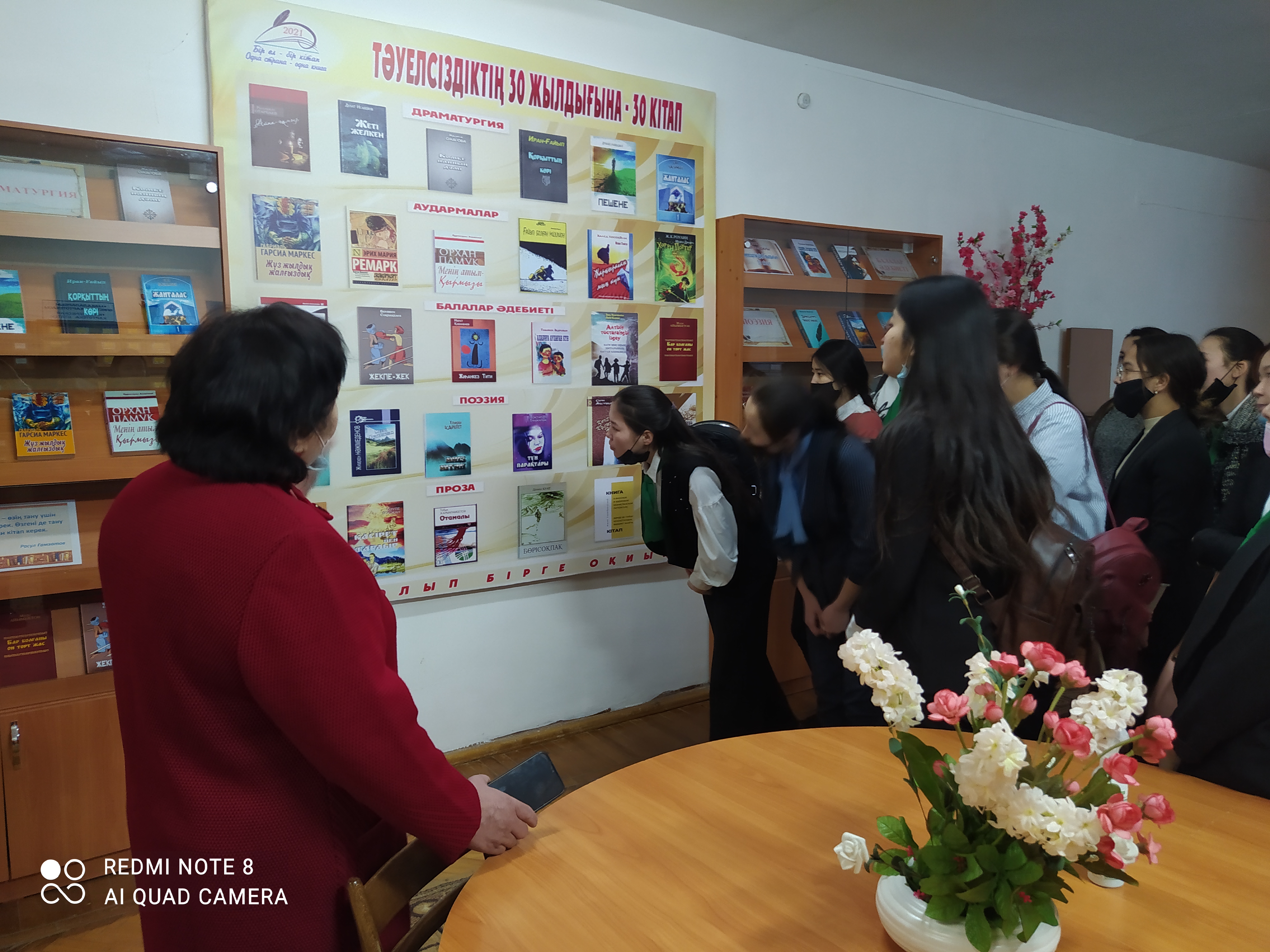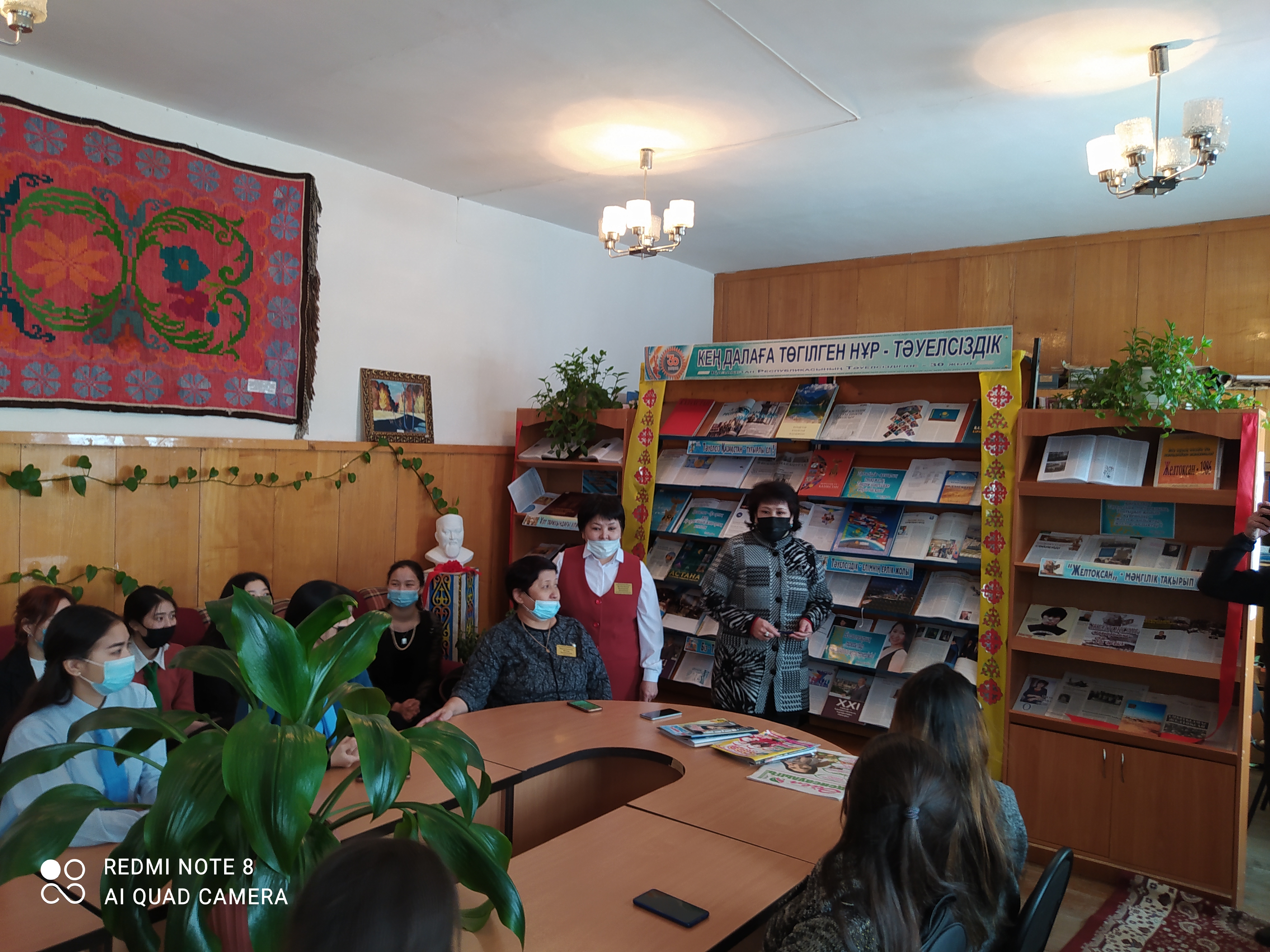 Сонымен қатар жыл сайын 20 –дан астам атаулы мерзімді басылымдарды жаздырып алып, оқырмандарға шолу жасайды. Түрлі тақырыптарда кездесу кештері, тұсаукесерлер, зияткерлік сайыстар өтіледі.Электронды каталог жайында библиограф Сейтқожина Гүльнар Кенжегазиевна кітапханалық сабақ өткізді.Саяхат соңында естелік суретке түсіп, керемет көңіл-күймен, рухани тұрғыда демалып тарқасты. Рухымызды көтеріп, руханилық жағына тереңірек үңіле жүрейік.