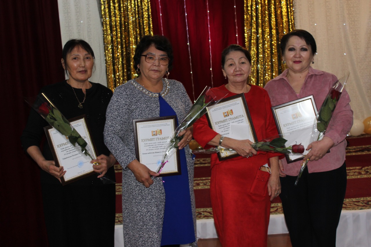 Еңбек күніне орай колледжімізде 20 жылдан жоғары қызмет істеп келе жаткан қызметкерлерге, нақтырақ айтсақ Райымбекова Ботакөз, Аюбекова Сания, Бекмаганбетова Жанагуль, Айтмаганбетова Гулнарға кәсіподақ атынан ақшалай сыйлық пен колледж директорының Құрмет грамотасымен марапатталды. Марапат иелерін құттықтаймыз.