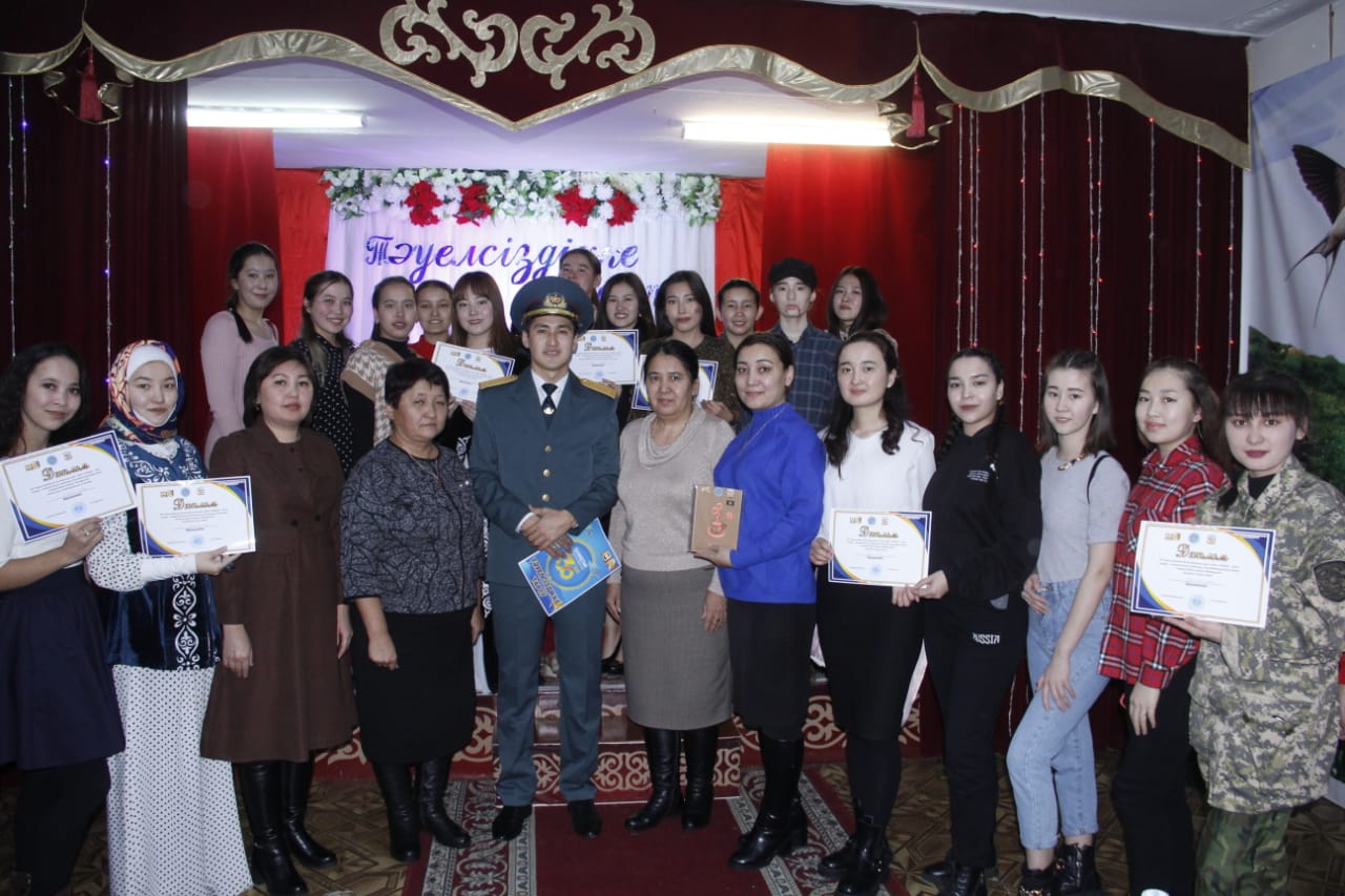Қ.Р. Тәуелсіздігінің 30 жылдығына орай "ЖАС САРБАЗ - 2021" әскери - патриоттық клубының ұйымдастыруымен желтоқсанның 10 - ы күні өткен "Тәуелсіздікке тарту" байқауы өтті. Байқаудың мақсаты жастарды Қазақстандық патриотизмге тәрбиелеу салт - дәстүрмен, тілімен және мәдени мұрамен ұштасқан бірегейлікті сақтау. Жаңа талантты орындаушыларды анықтау және қолдау, байқауда 2 және 3 курс білім алушылары өзара бақ сынасты.