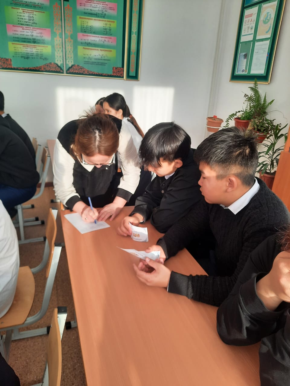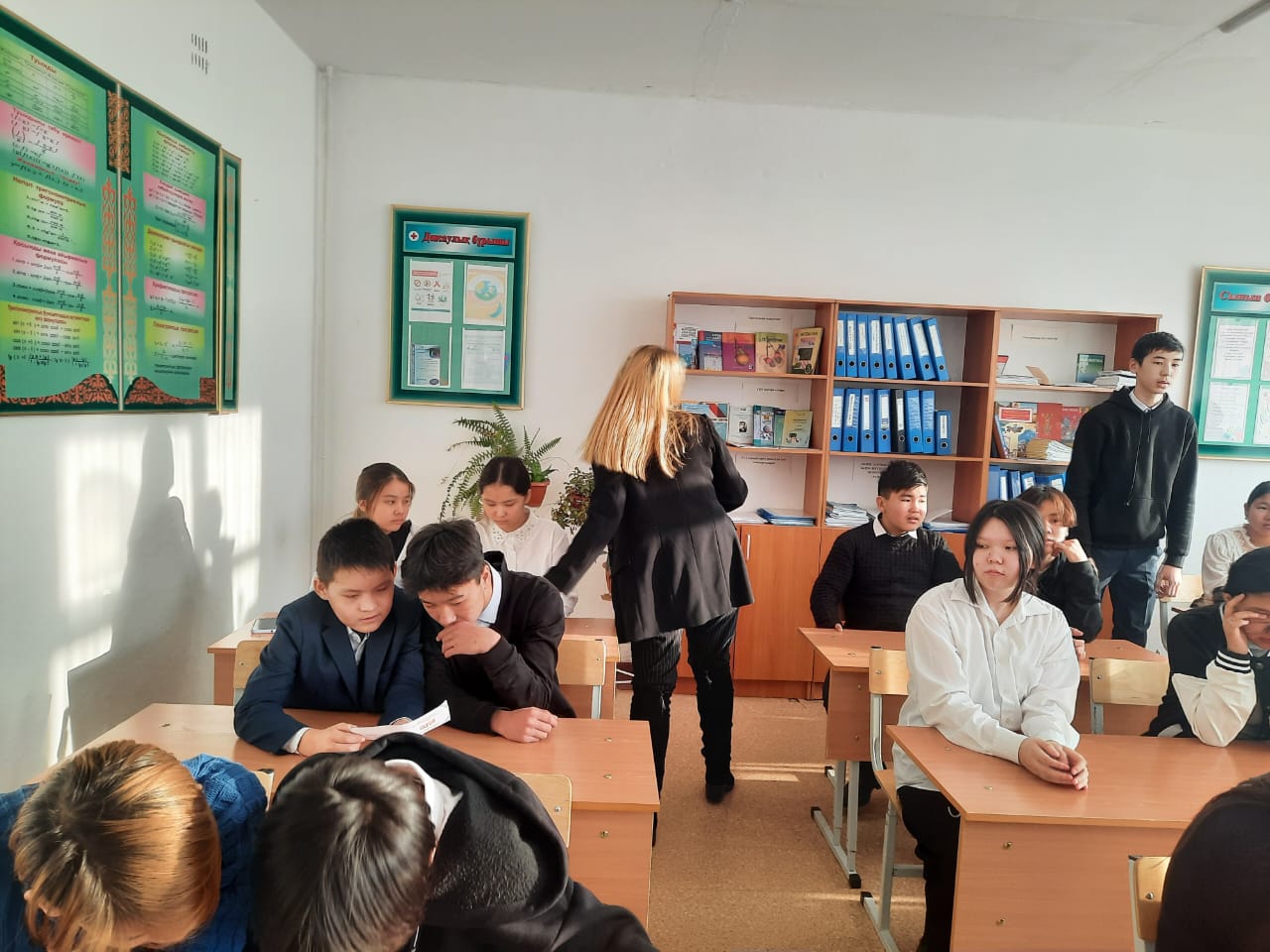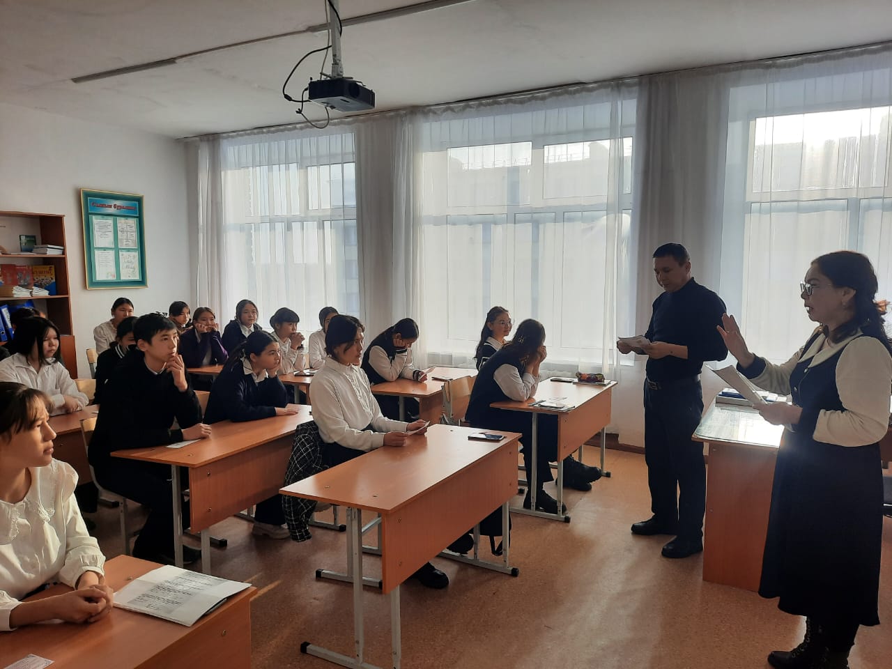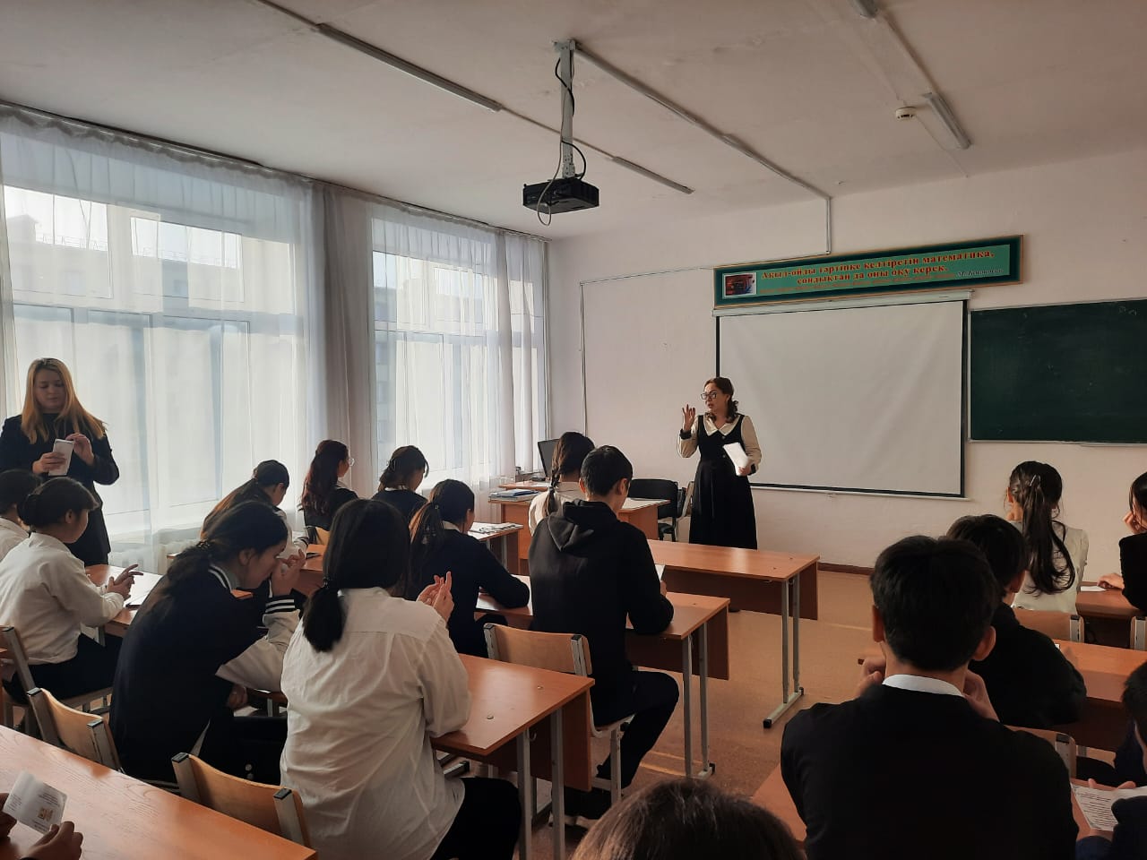 Колледжге оқуға түсуге ынта білдірген оқушылар да болып, сұрақтар қойып, жауаптарын алды. Үлестірмелі қағаздар таратылды.
