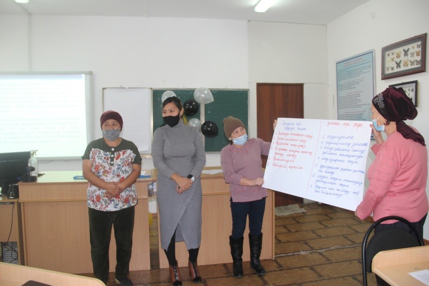 Семинар-тренинг барысында жасөспірімдердің бойындағы компьютерлік ойындарға деген тәуелділіктің және аутодеструктивті мінез-құлықтың алдын- алу бойынша психологиялық ұсынымдар айтылды. Сонымен қатар, бейнеролик көрсетіліп, ата-аналар өз ой-пікрілерімен бөлісті. Ата-ана мен бала арасындағы қарым-қатынас деңгейін анықтау мақсатында ата-аналар арасында сауалнама жүргізілді. Және ата-аналарымыз бала тәрбиесіндегі өз тәжірбиелерімен бөлісіп, ой-пікірлерін ортаға салды. Семинар-тренинг соңында қаншалықты жағымды қарым-қатынас орнатылғанын анықтау мақсатында психологиялық жаттығу жүргізілді. Ата-аналар семинар-тренинг ұнағанын айтып, болашақта осындай жиындар жиі өткізілгенін қалайтындарын айтты.