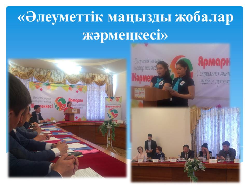 4 слайд ҚБ сәуір айында құрылып, бірлестікте жұмыс атқарып жүрген колледж білімалушылар қатарынан жасақталған белсенді еріктілер Обылыстық ішкі саясат басқармасының тапсырысы бойынша «Іскер жастар кеңесі» ҚБнің ұйымдастырумын жыл сайын өткізетін «Әлеуметтік жобалар жәрмеңкесіне» қатысып, «Сыйлыққа мереке» жобасы 150 мың тенге көлеміндегі шағын грант иегері атандық.