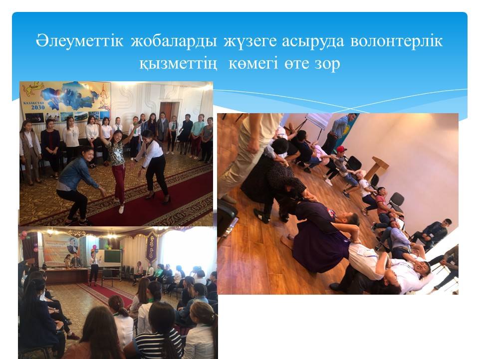 20 слайд ҚБ жанынан құрылған волонтерлер қозғалысы өте жақсы дамыған. Биылғы жылы біздің колледж волонтерлері қаламыздағы оқу орындары студенттеріне өз күштерімен қалалық оқу - жаттығу семинарын ұйымдастырып өткізді. Тәжірибие алмасты, біліктіліктерін арттырды.