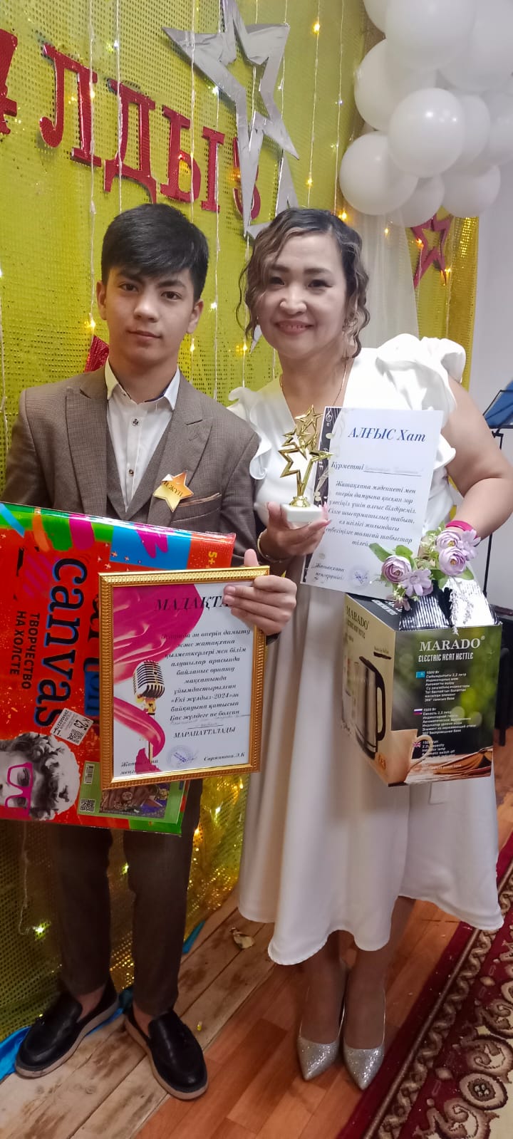 Байқау нәтижесі бойынша Бас жүлдені Гүлхашима Қуандыққызы мен Муз-2курс студенті Байсейітов Әли