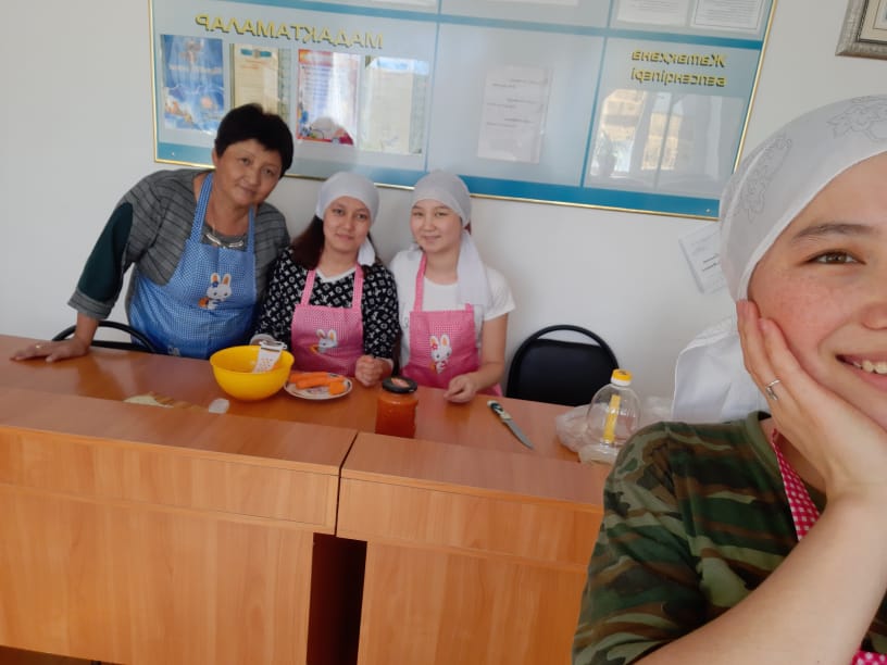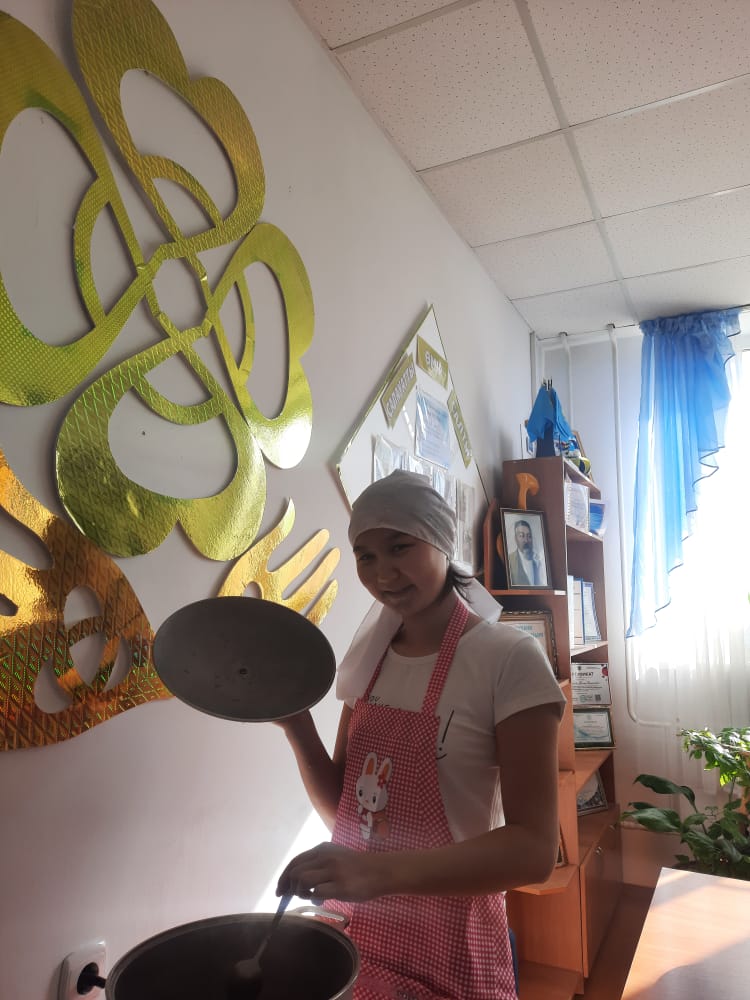 Көңілсіз берген қымыздан көңілді берген шай артық. Жапалап асқан жасықтан жағып жеген май артық. Қазақ халқы асқа, тағамға үлкен мән берген. Халқымыз кәделі әрі орны бөлек тағамдарын ет пен сүттен жасаған. Қымыз, шұбат сияқты шипалы тағамдар батыс елдерінде мүлде жоқ. Бұл – біздің халқымыздың ерекшелігі.Ұлттық дастарқанымызға байланысты алуан түрлі терминдер бар және олар зерттеуді қажет етеді. Бұл терминдер – бай қазақ тілінің және ұлттық мәдениетіміздің ажырамас бір бөлшегі. Сондықтан біз оны білуіміз және сақтауымыз қажет. Жатақханамызда «Аспаз үйірмесі»өте ерекше ынтамен өтеді.Қыздарымызға жасалатын тағамдар жайында толық түсінік беріліп,сол тағамдарды жасалу барысында түсінік берілді. Дастарханға қойылған тағамның қалай пісріліп дайындалғаның, сүйкімділігі мен дәмділігінің айрықша маңызы бар. Сүйкімді әрі дәмді даярланған тағам көзді қызықтырып қана қорймайды, тәбетті шақырып, асқазанға шырын бөледі, сөйтіп тағамды қорытатын ішкі жүйенің барлығы асты «қабылдауға» дайын тұрады. Тағам ауызға түсісімен-ақ, ас қорытатын ағзалар дереу қызметке кіріседі, соның нәтижесінде белоктар, майлар, көмірсулар жақсы сіңеді.Бүгінгі біздің дайындаған тағамымыз палау және шәйға тәтті панкики.