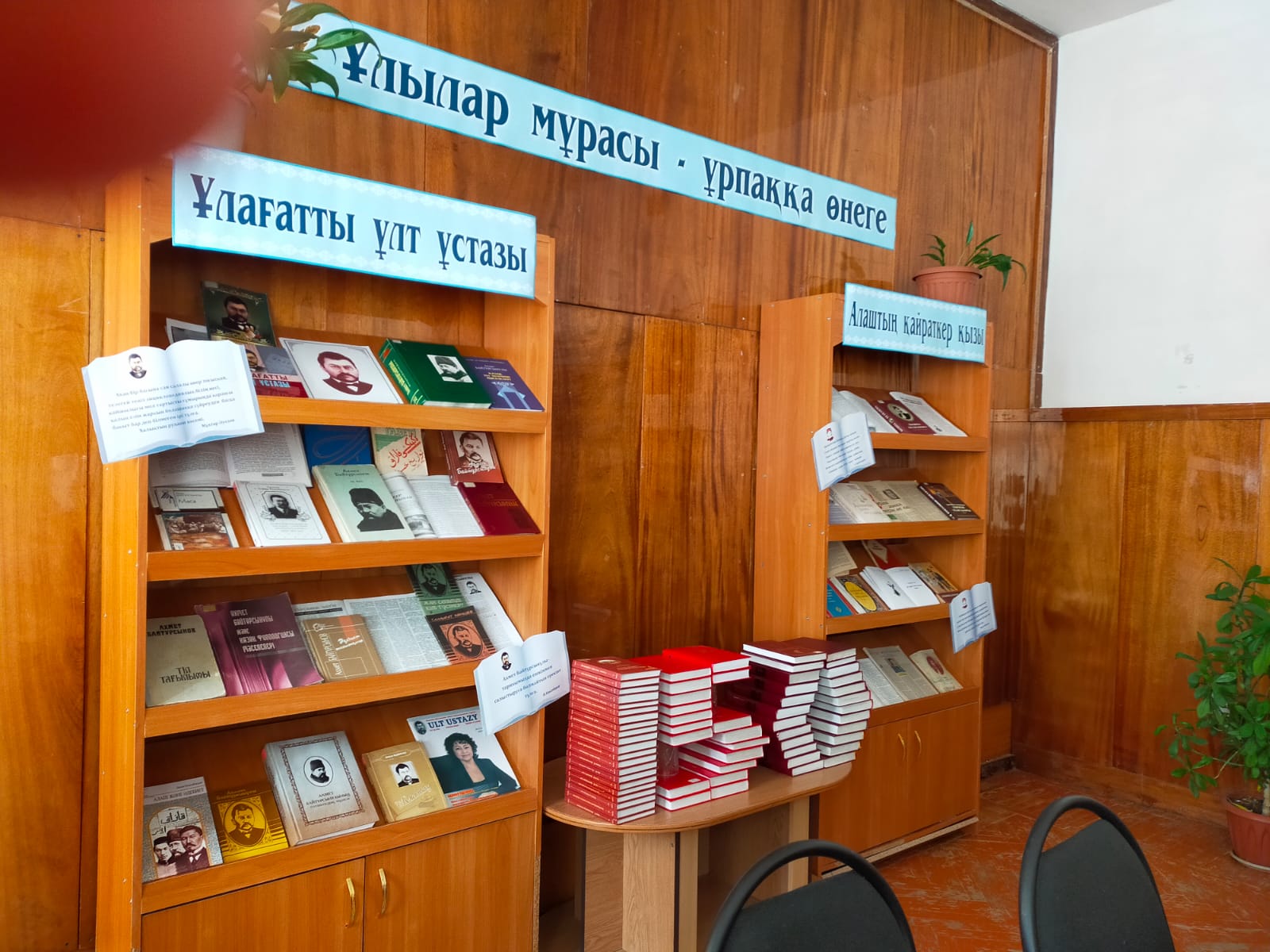 Қаламыздағы облыстық әнбебаб ғылыми кітапханасында "Ұлылар мұрасы-ұрпаққа өнеге" атты тақырыпта А.Байтұрсыновтың 150 жылдығына орай іс шара өткізілді. Жатақханамыздың 1 курс студенттерінің қатысуымен. Түрлі викториналық сұрақтар қойылды, Ұстаз жайында көптеген мағұлматтар алып, өздерінің білімдерін толықтырды. Ақынның көптеген оқулықтарымен танысты. Ахаңның өмірдегі ең маңызды істер қатарына үш ірі бастамасын жатқызуға болады: Әлихан Бөкейхан және Міржақып Дулатовпен бірлесе отырып, өз заманы мен бүкіл қазақ халқы үшін тұтас ұлттың сауаты мен білім айнасына айналған "Қазақ" газетін басып шығару; Араб графикасын қолдану арқылы "Төте жазу" жасау және "Алаш-Орда үкіметінің қызметіне қатысу түсіндірілді. Біздің кім екенімізді, қайдан шыққанымызды ана тіліміздің қай тілі екенін және осындай жаңа Тәуелсіз Қазақстандағы әл-ауқатымыз қандай тұлғалардың арқасында екенін мәңгі есте сақтауымыз шарт.