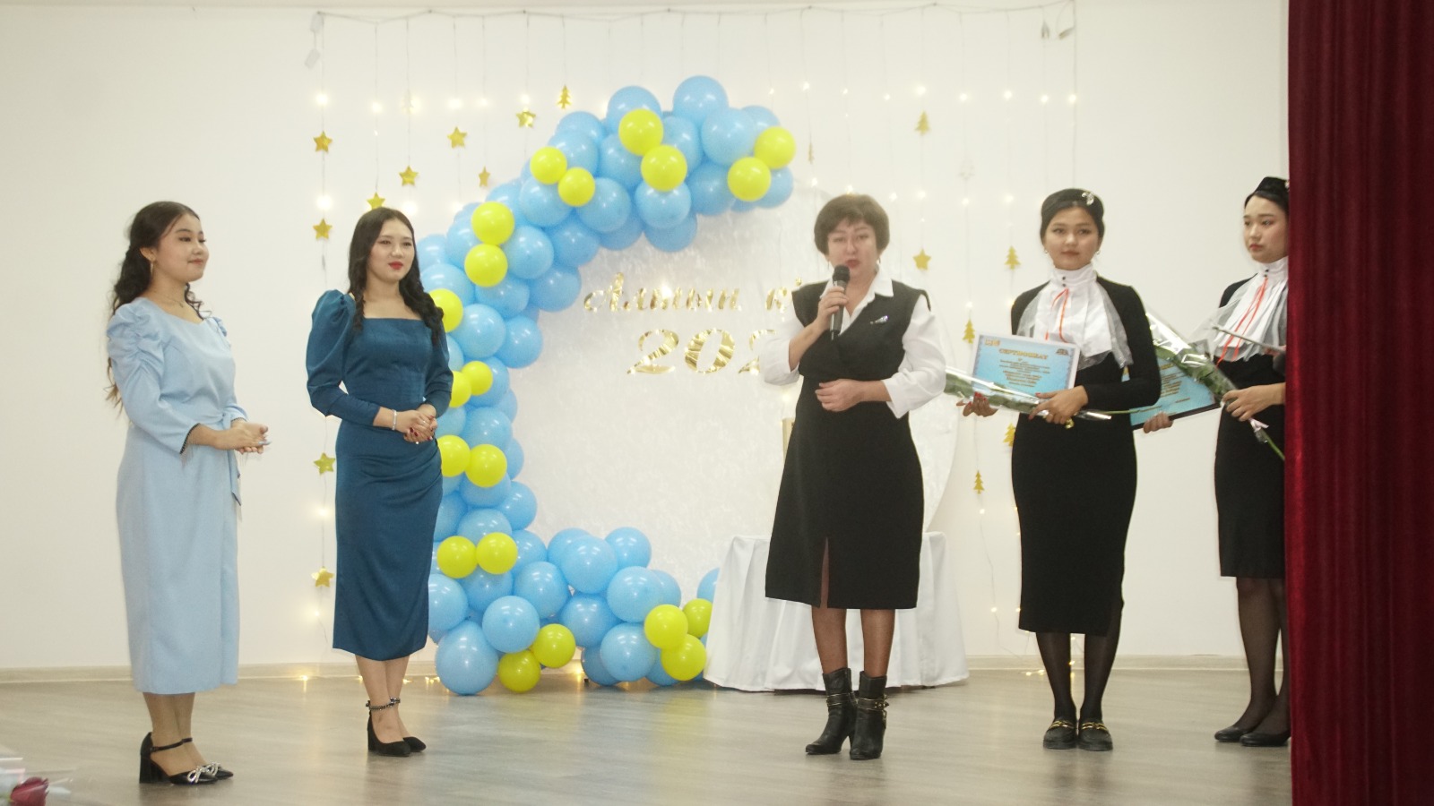 В начале торжественной церемонии директор колледжа Мамбетов Руслан Еликбаевич поздравил обладателей данной награды, вручив им соответсвующие сертификаты.