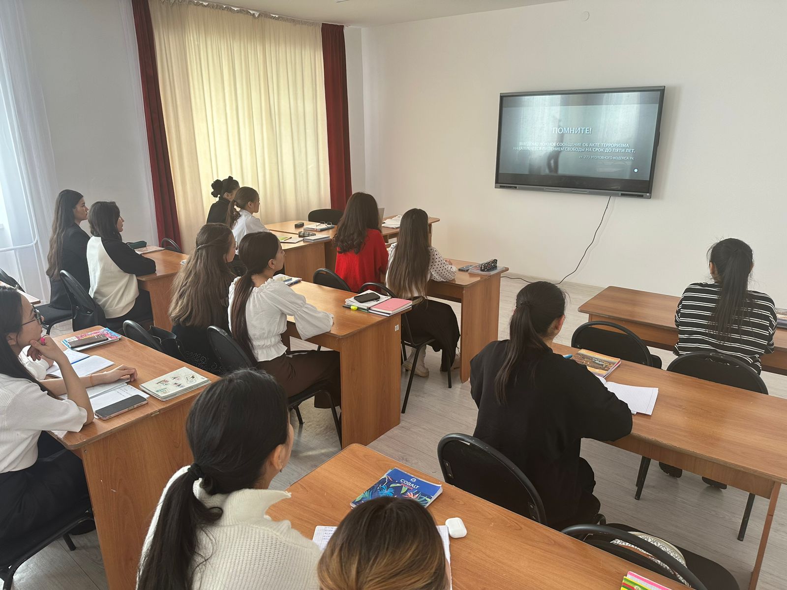 «Совершая анонимные звонки, ты попадаешь под уголовную ответственность» Трансляцию роликов показали среди студентов и проведена  разъяснительная  работа.