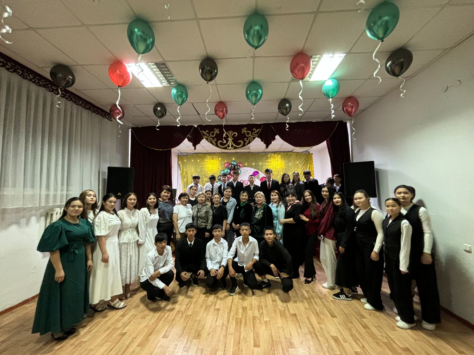 Праздничный вечер начался с весёлых песен и танцев, после чего с поздравительным словом выступила заместитель директора по воспитательной работе Оразова Г. К..